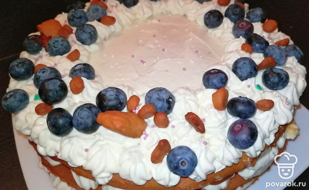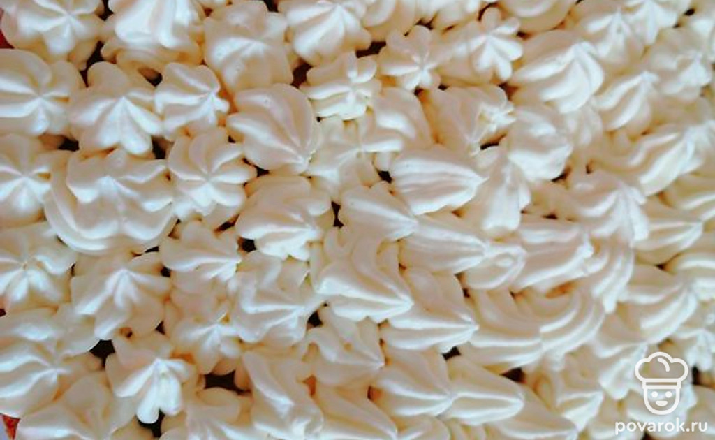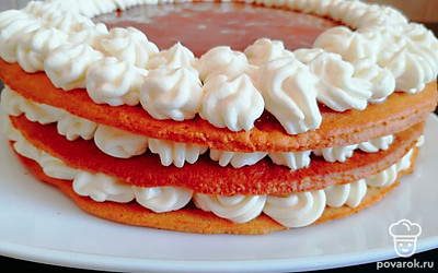 Сделать кремчиз и выложить на коржи при помощи кондитерского шприца.