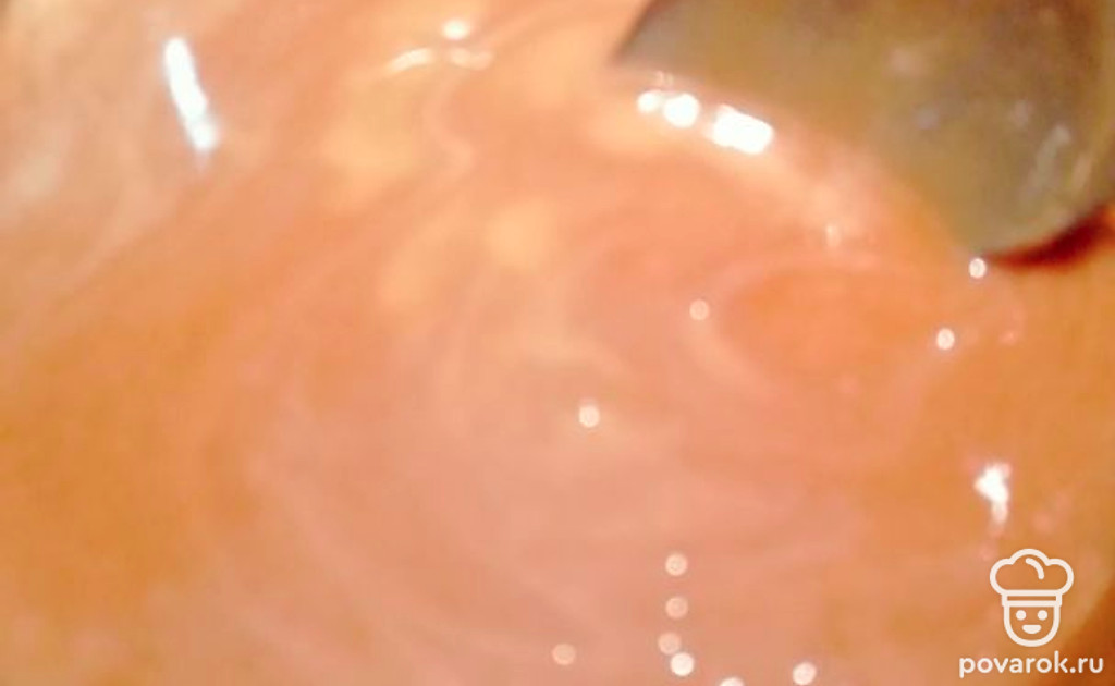 Смешать соду и лимонный сок, добавить в смесь и перемешывать не снимая с водяной бани.