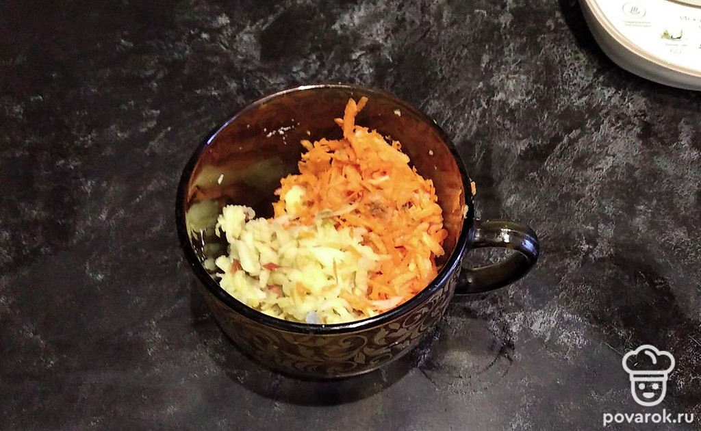 Потрите на тёрке яблоки и морковь.
