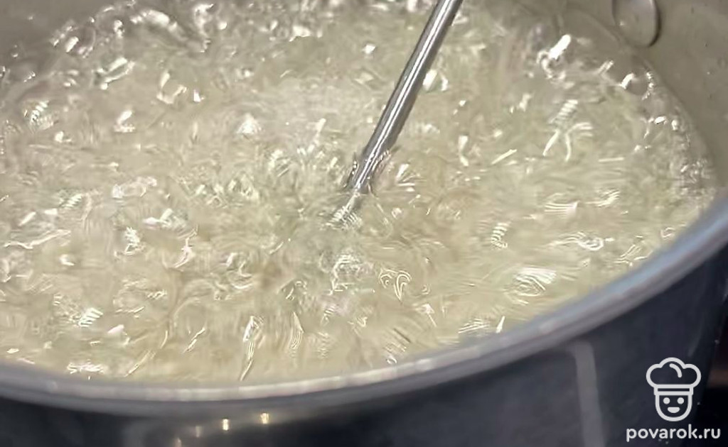 Замочите желатин силой 220 блюм в ледяной воде: листовой можно просто опустить в воду, а если у вас порошковый, то смешайте с водой в пропорции 1:6. Оставьте набухать на 10 минут.