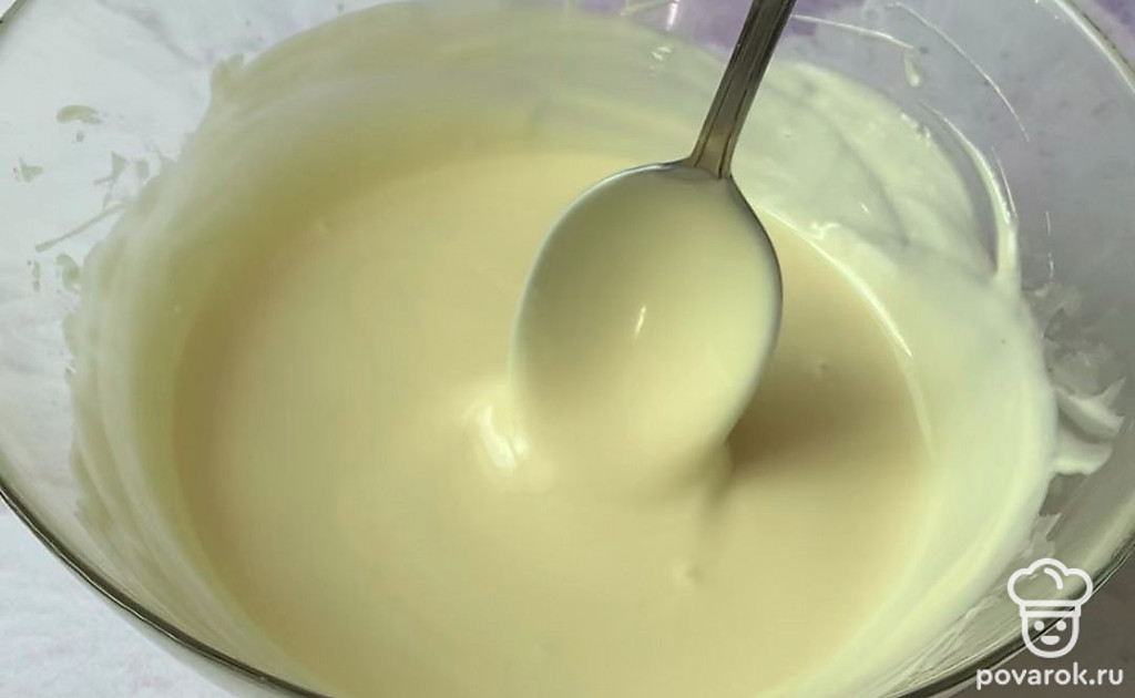 Накройте глазурь пищевой пленкой в контакт, то есть чтобы она касалась поверхности глазури. Уберите в холодильник для стабилизации минимум на 6 часов.