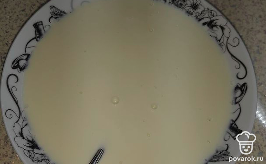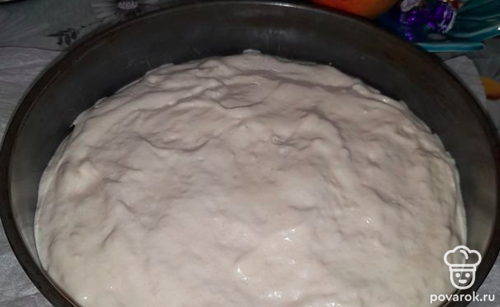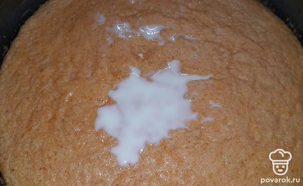 Добавить 170 грамм муки и 4 грамма разрыхлителя.