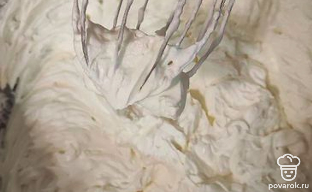Приготовим крем из сливок и сахарной пудры, взбив ингредиенты миксером.