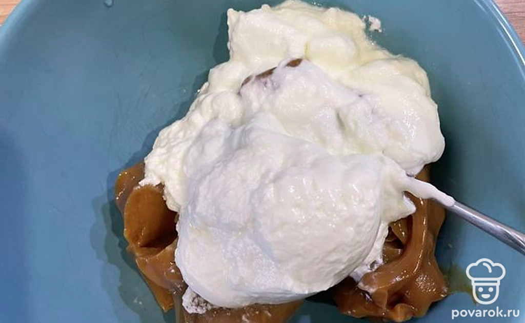 Для соуса смешать сгущенку и сметану.