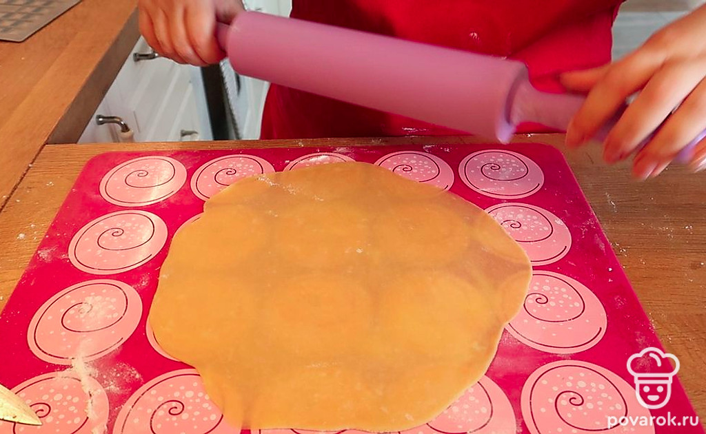 Раскатываем каждый кусочек теста в пласт и отправляем в духовку выпекаться на 4–5 минут при температуре 180 градусов.