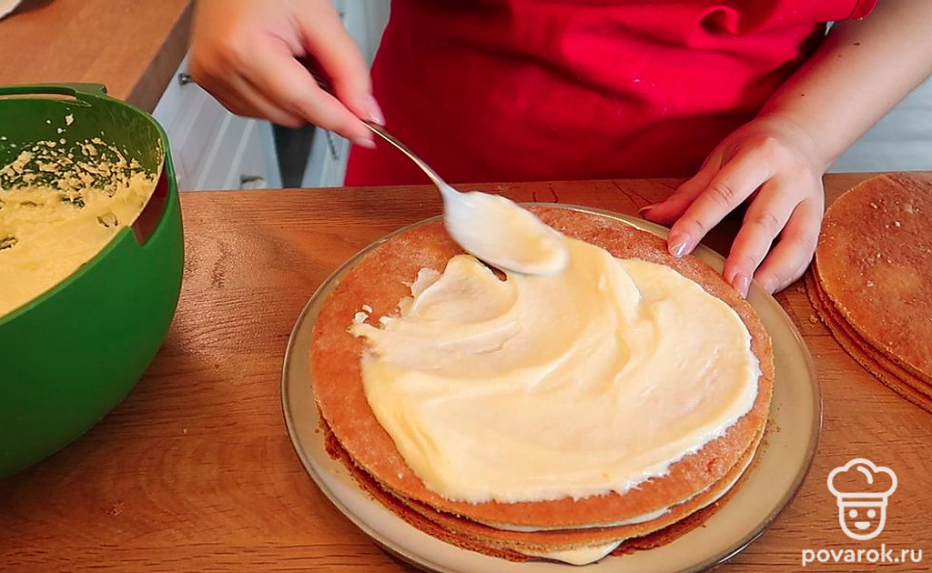 Прослаиваем коржи кремом.