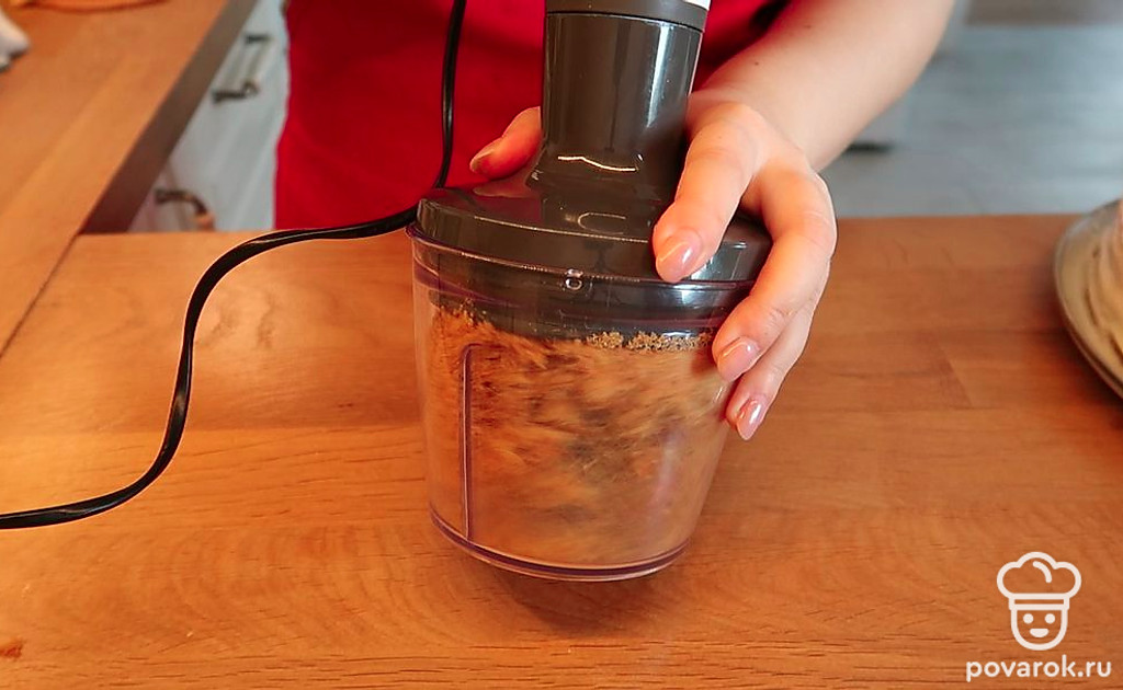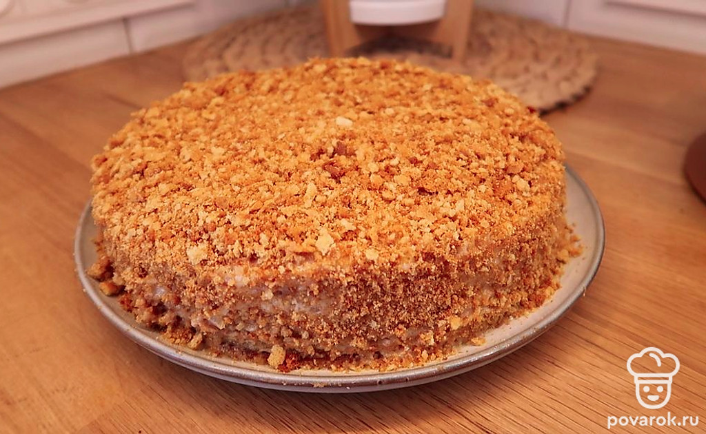Из обрезков коржей делаем крошку, измельчая их, и обыспаем этой крошкой наш торт с боков и сверху. Наш торт готов!