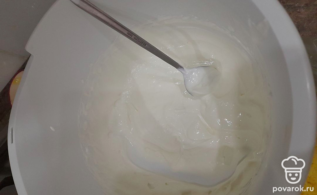 Сметану и оставшийся стакан сахара взбейте в течение 5 минут.