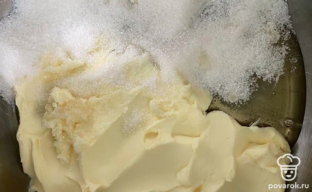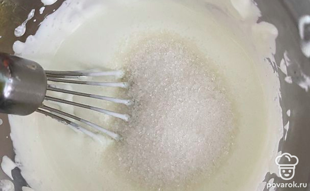 Готовим сметанный крем. Сметана должна быть довольно плотной. Сметану взбиваем миксером, постепенно добавляем сахар или сахарную пудру. У нас должен получится однородный сметанный крем.