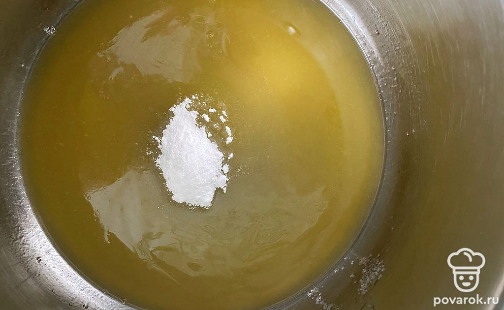 Помешивая, нагреваем смесь на водяной бане. Когда масло растает и смешается с медом и сахаром, у нас получится довольно жидкая однородная смесь. Если какие-то крупинки сахара не растворились, ничего страшного, они растворятся в ходе дальнейшего приготовления теста. Доводить до кипения смесь не нужно.