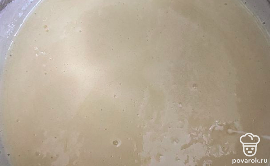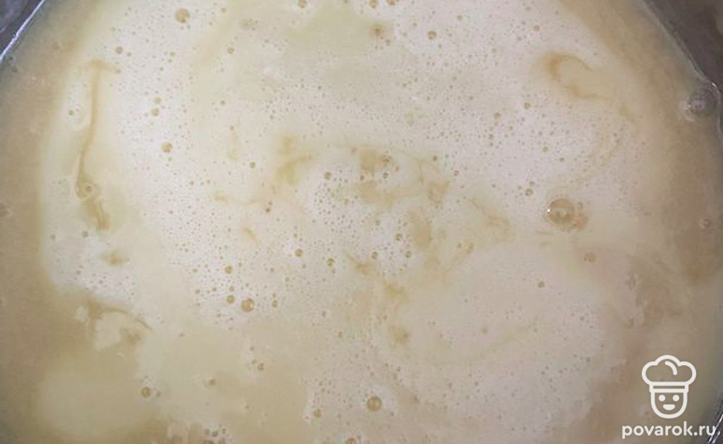 Помешивая, продолжаем нагревать смесь. Сода вступает в реакцию с медом, смесь светлет и увеличивается в объеме. Как только достигли данного эффекта, выключаем огонь, больше водяная баня нам не потребуется.