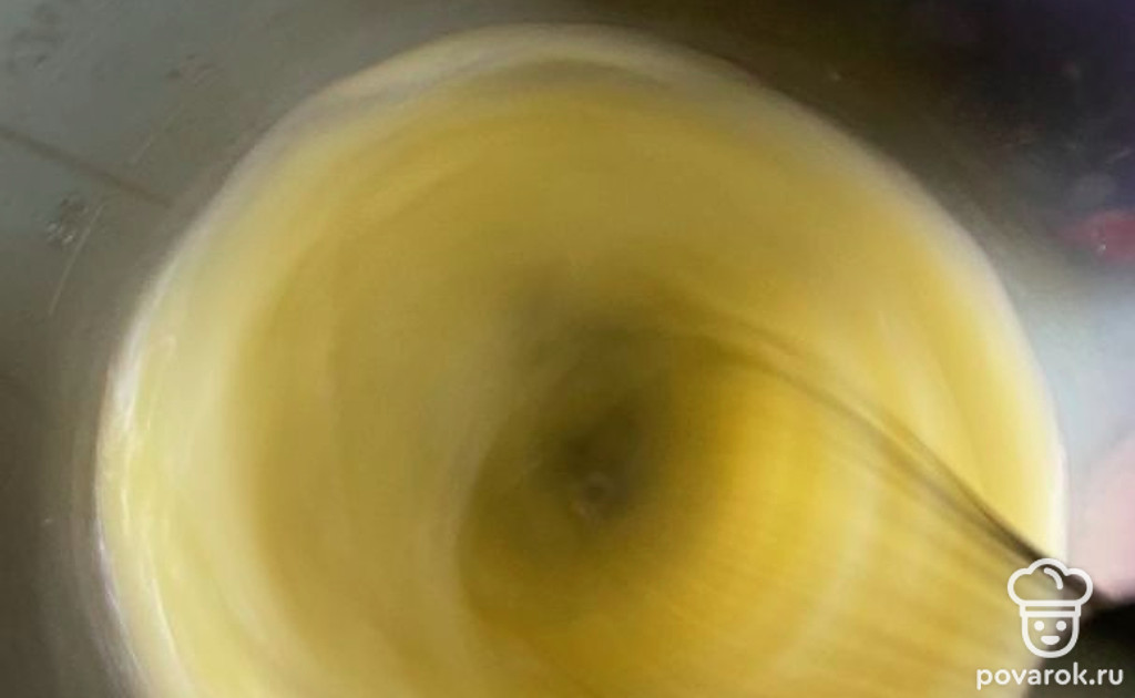 Взбиваем яйца, можно взбить вручную при помощи самого обычного веничка. Можно сильно не взбивать, главное смешать белки с желтками до однородной массы.