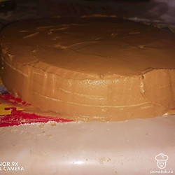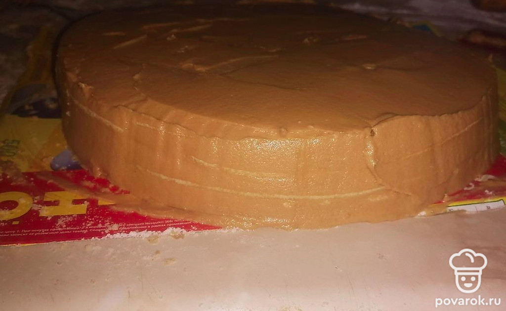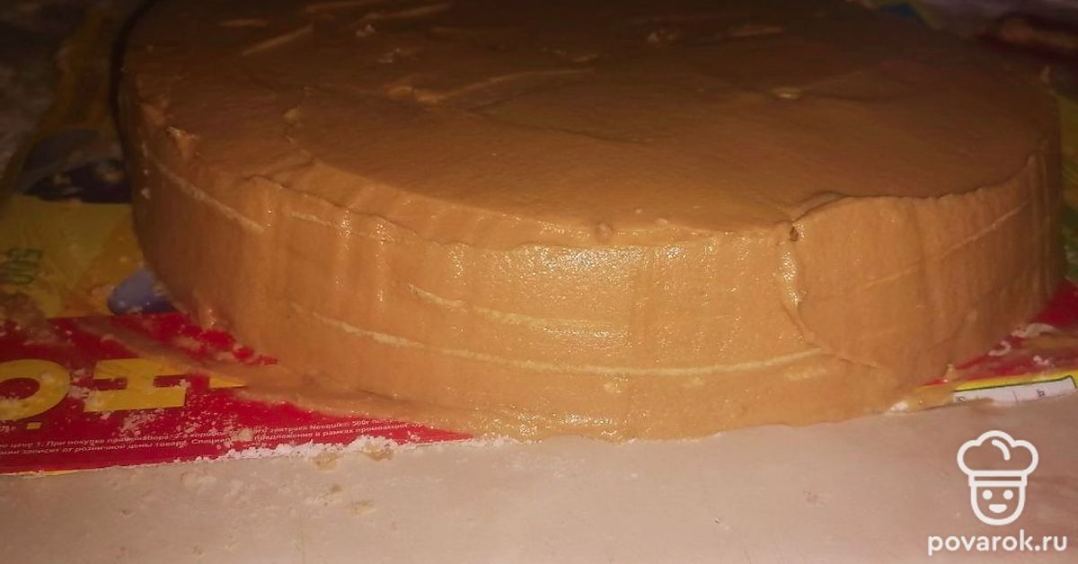 Добавляем сгущенку, взбиваем. Собираем торт.