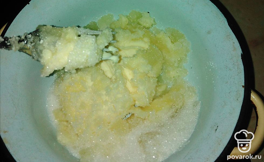Ставим водяную баню. Как закипит вода ставим тарелку или что есть, только чтобы не касалось дна, кладём 100 граммов масла, сахар и топим.