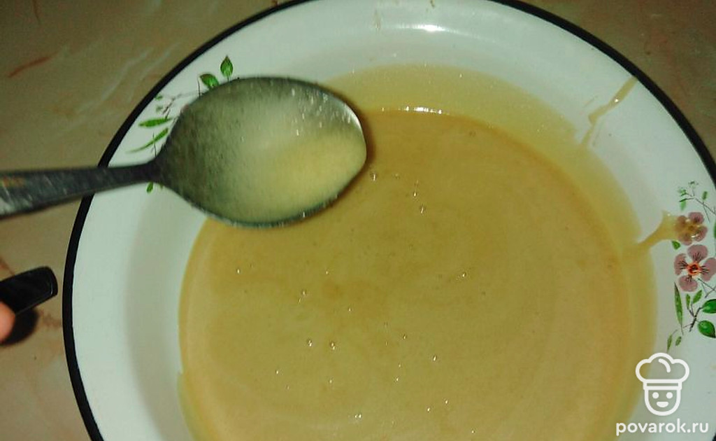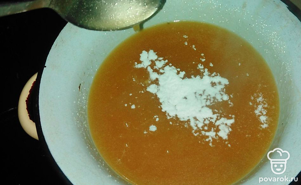 Все растопилось. Кладём соду, масса побелеет и увеличиться в объёме, как это произошло снимаем с огня.