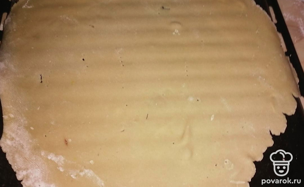 Каждый шар катаем в тонкий пласт, с добавлением муки, прежде чем положить тесто на противень, смазать маслом надо, если есть антипригарный коврик не надо смазывать.