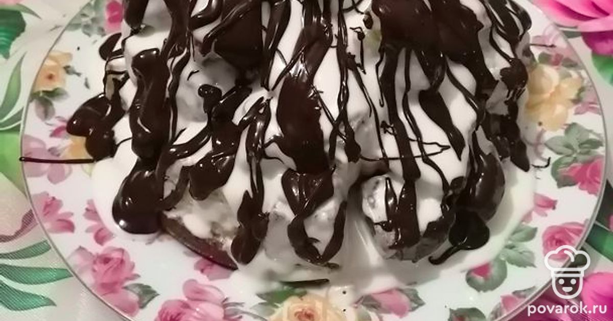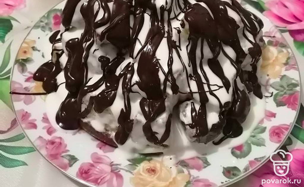 Шоколад растапливаем на водяной бане и поливаем сверху торт. Оставляем в холодильнике на 2 часа.