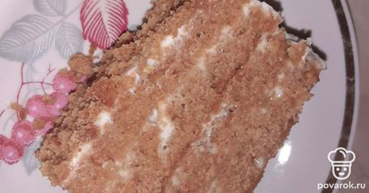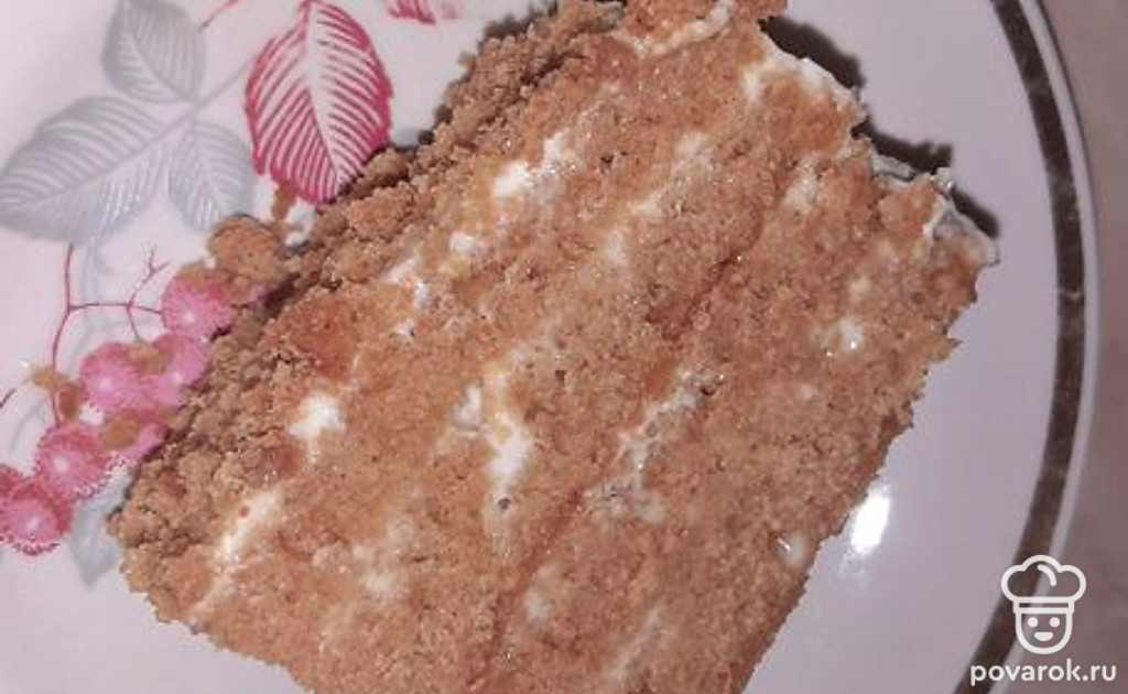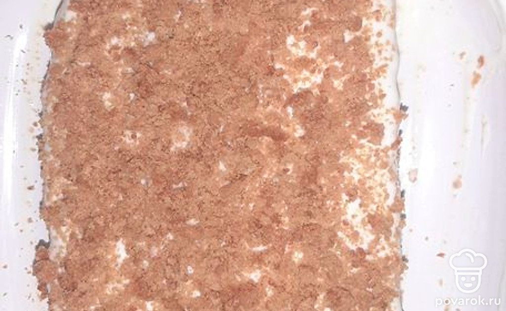 Посыпаем крошкой смазанные кремом коржи и отправляем в холодильник пропитываться минимум на 6 часов, лучше на ночь.
