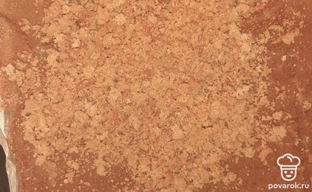 Оставшиеся корочки от выравнивания коржей измельчаем в крошку.