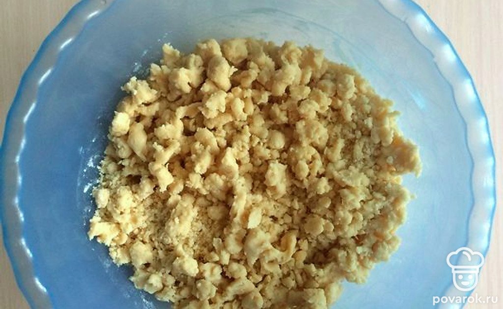 Муку и маргарин смешиваем до получения однородной массы. Добавляем воду и еще раз тщательно перемешиваем.