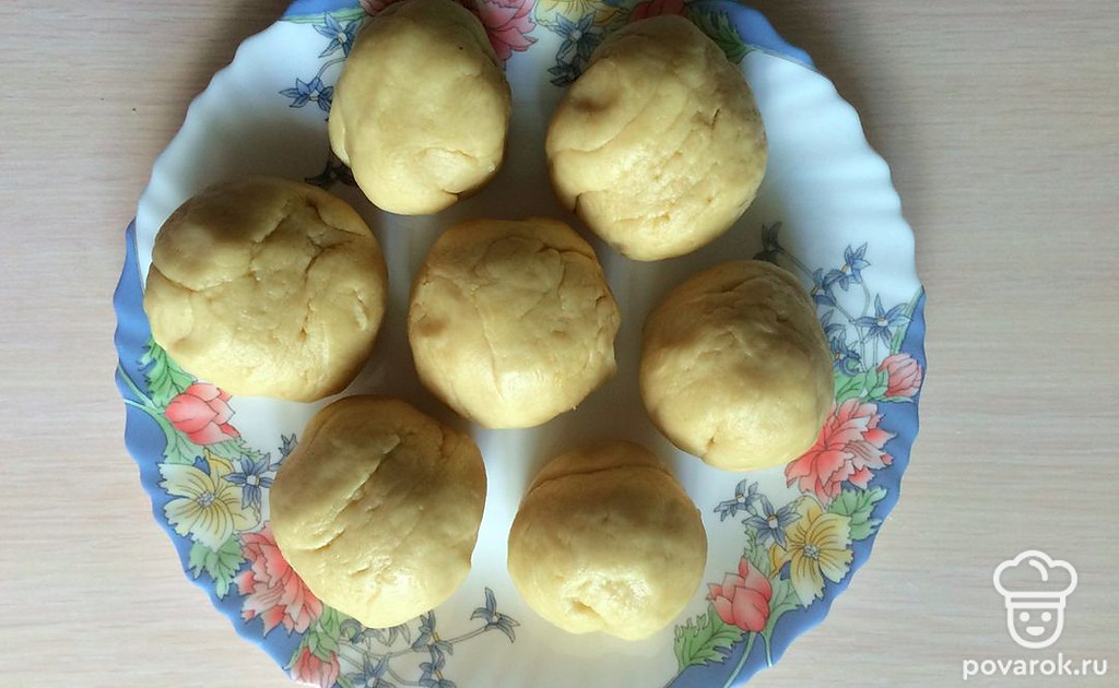Тесто делим на 7 частей и ставим в холодильник на 1 час.