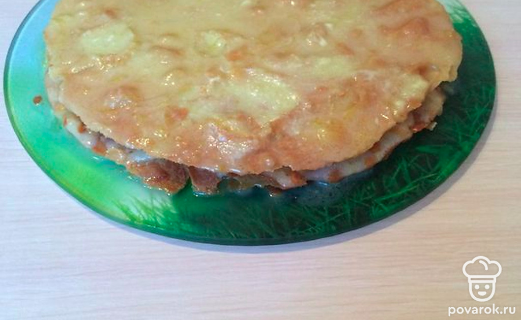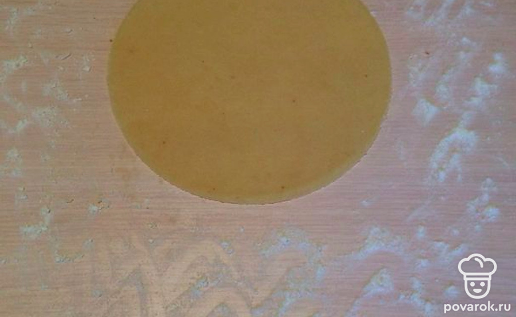 Из теста раскатываем пласты толщиной примерно 0,5 см, вырезаем круги и запекаем их в духовке при температуре 180 градусов до готовности. Остужаем.