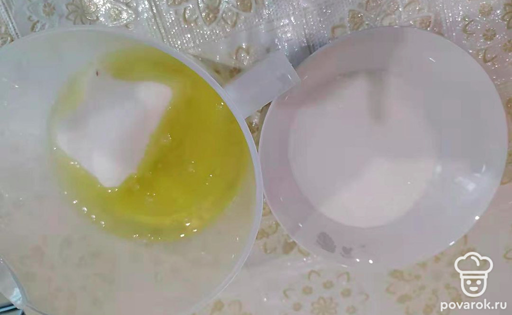 Белки отделить от желтков. Очень аккуратно, чтобы ни капли желтка не попало в белок.