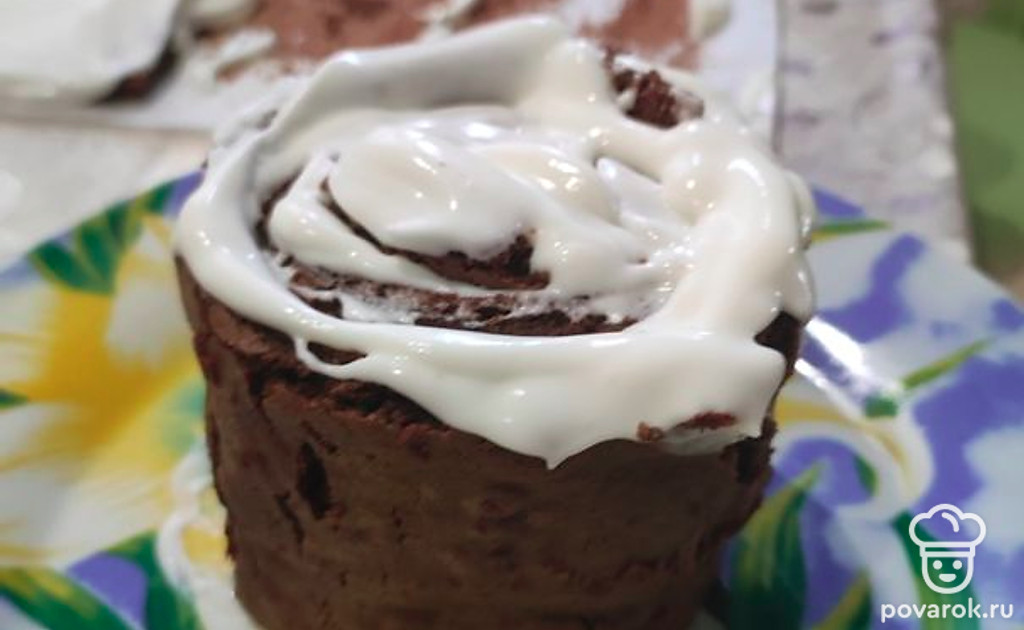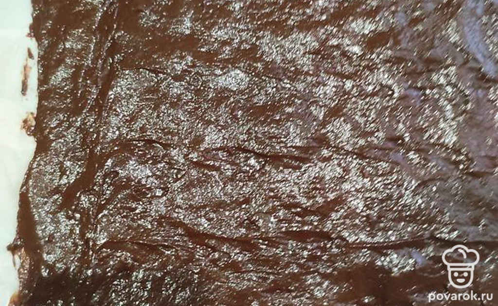 Крем намазываем на полосу, сворачиваем в рулет, выкладываем на блюдо. Следующую полосу намазываем кремом, оборачиваем рулет. Все полосы с кремом оборачиваем, ставим встык.