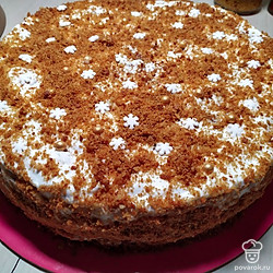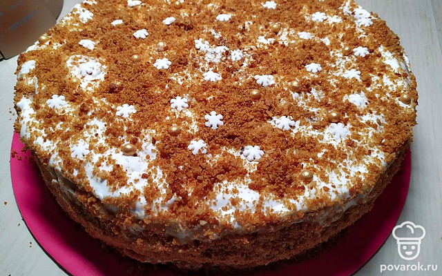 Посыпьте крошкой от обрезков коржей и украсьте по своему желанию.