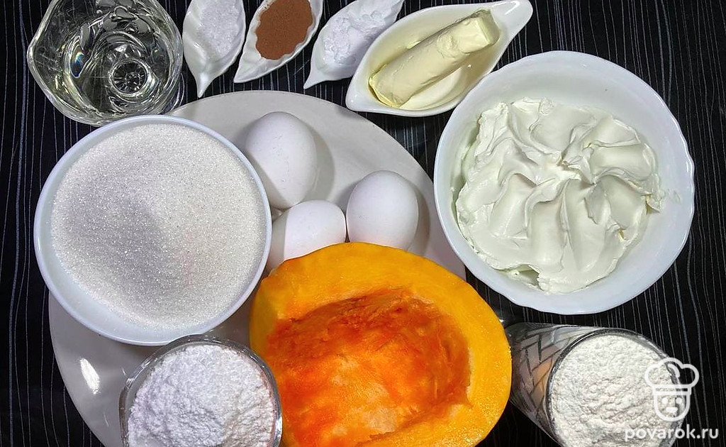 Сочная мякоть тыквы содержит много полезных веществ — витамины группы В, каротин, клетчатку, пектин, фолиевую кислоту, антиоксиданты. Из яркой тыквы можно приготовить много блюд — от супов до десертов, совершенно разных по вкусу, соленых или сладких. Десерты из тыквы получаются нежными, очень привлекательного цвета, с приятным ароматом. При добавлении тыквы в тесто оно становится красивого желто-оранжевого цвета, с мягкой влажной структурой — это идеально подходит для тортов. А крем из творожного сыра добавит в торт пользы в виде белка и кальция, и придаст сливочный вкус каждому кусочку этого торта.