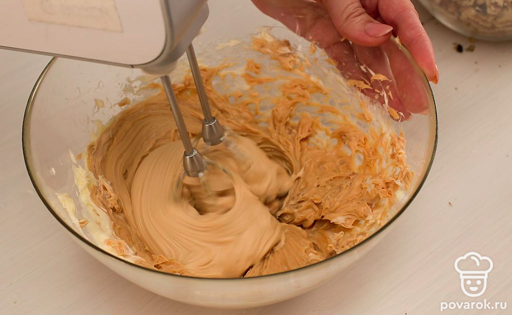 В глубокой посуде взбейте размягченное сливочное масло до пышности. Добавьте сгущенку и еще раз взбейте до однородности.