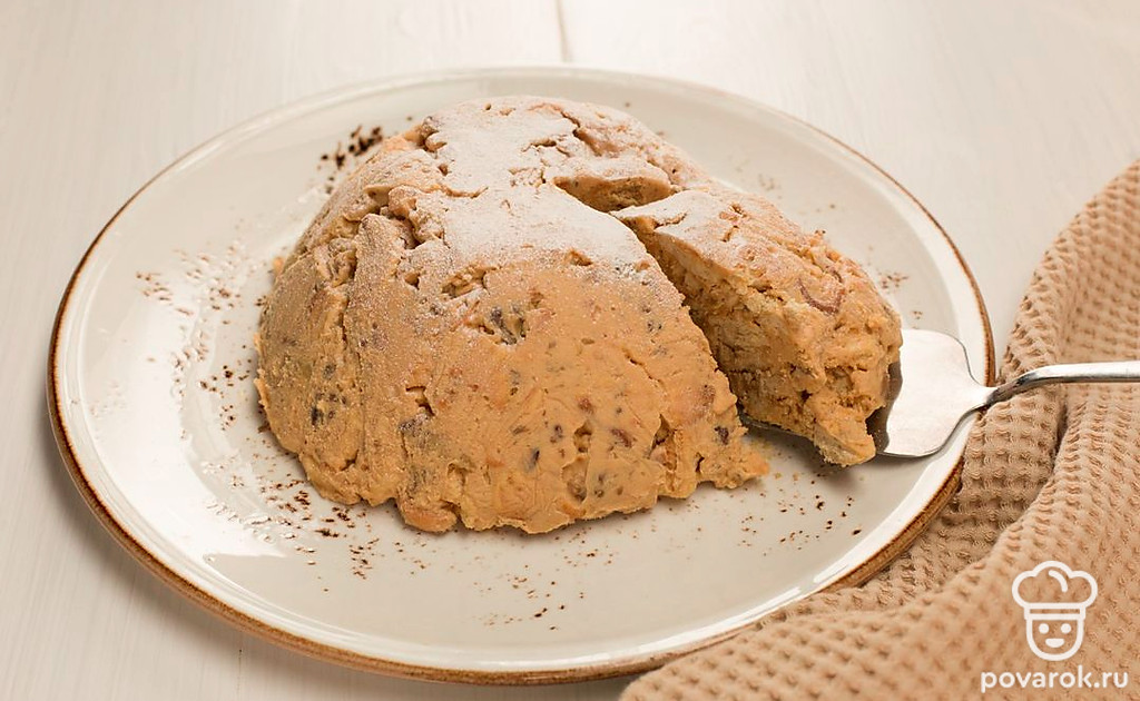 Всыпьте в получившуюся массу орехи, печенье и аккуратно, но тщательно перемешайте. Затем выложите на тарелку в виде горки и отправьте в холодильник на 4 часа.