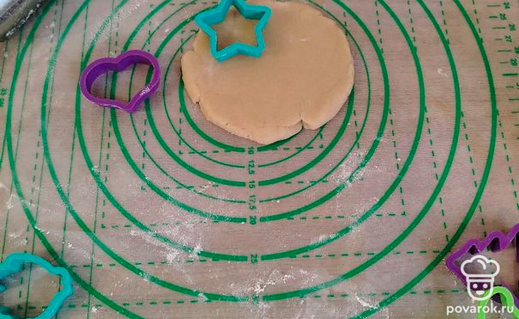 Пока тесто охлаждается, достаньте коврик для теста, скалку и формочки для печенья. Сейчас уже можно позвать всех своих маленьких помощников. Раскатайте тесто на присыпанном мукой коврике.