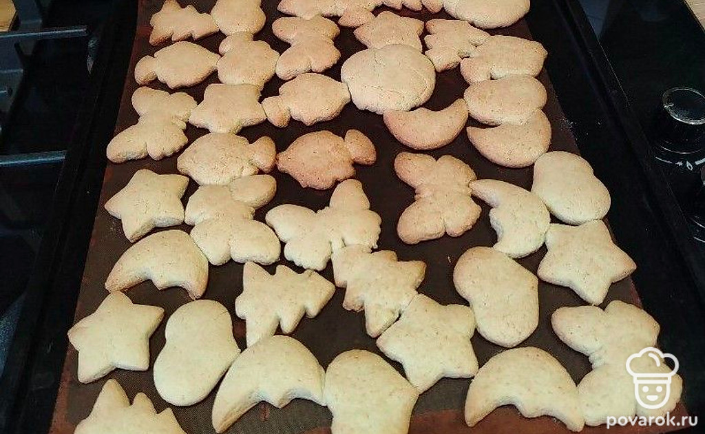 С помощью формочек вырежьте печеньки и разложите их на противне на небольшом расстоянии друг от друга. Отправьте противень в разогретую до 180 градусов духовку на 15 минут.