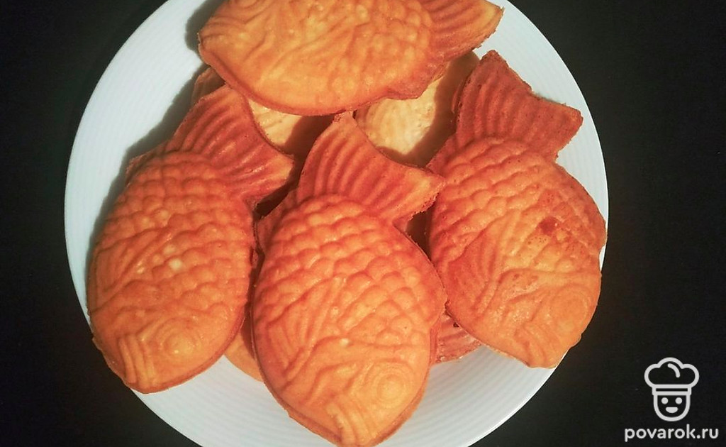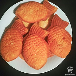 Формочки вымойте и тщательно просушите. После того, как мультипекарь нагреется, налейте в каждую рыбку по 1 столовой ложке теста. Выпекайте 5-7 минут в зависимости от того, насколько хрустящую корочку у печенья хотите.