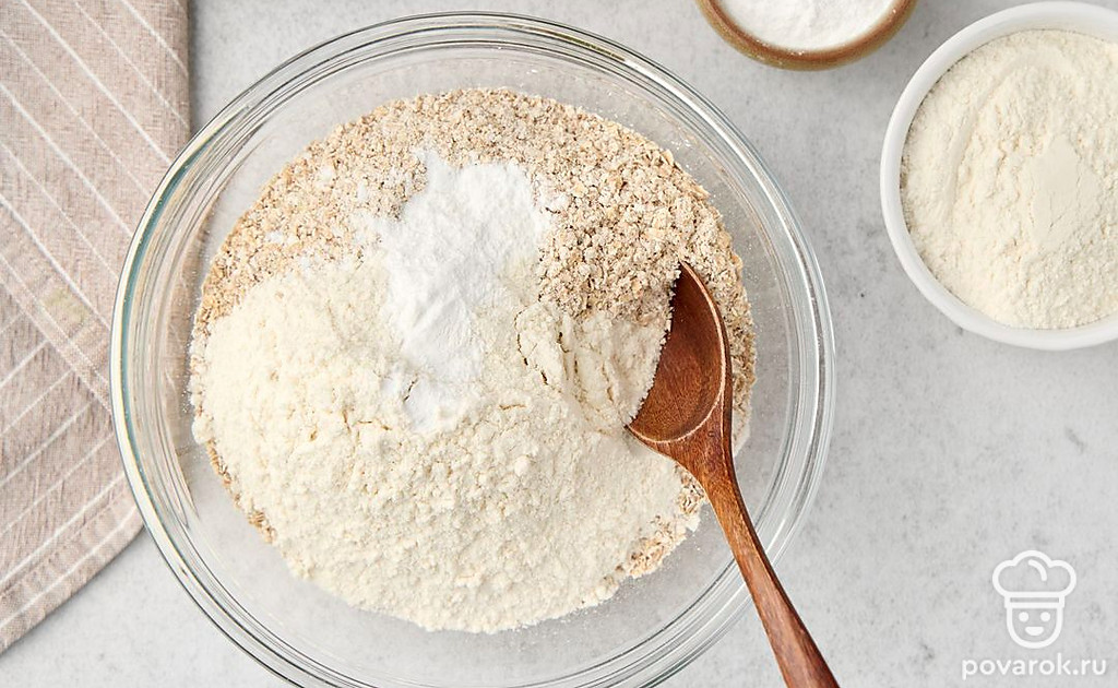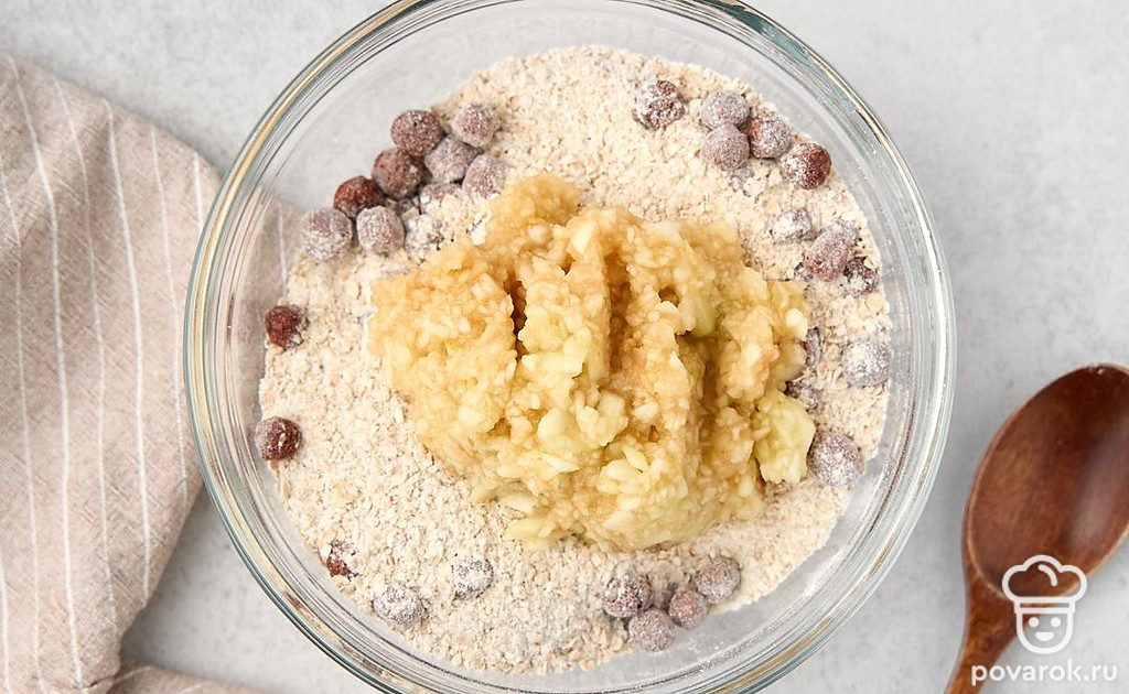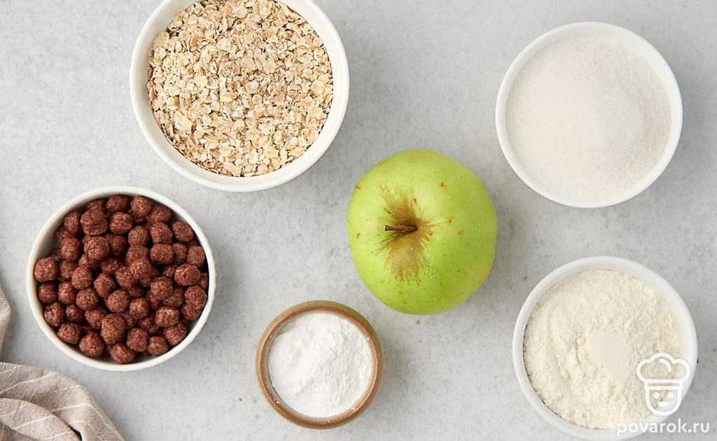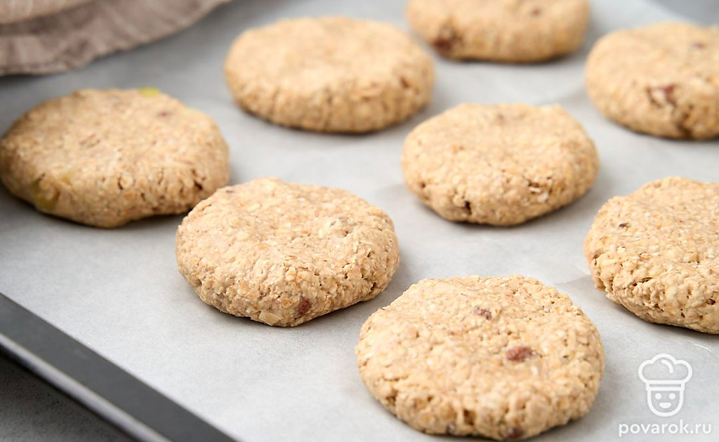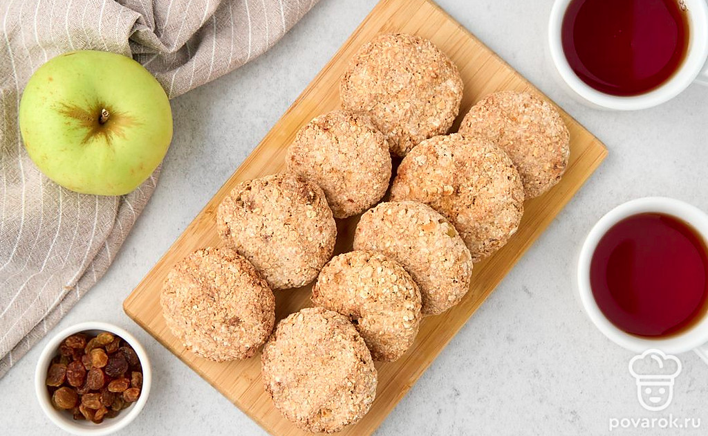 Овсяно-яблочное печенье получается диетическим, ведь в нем почти нет муки. При желании можно также заменить белый сахар на тростниковый или взять мед в качестве подсластителя. В этом случае положите вместо 3 ст.л. сахара 2 ст.л. меда. Также сделать печенье слаще помогут цукаты и сухофрукты: измельченные финики, изюм или курага.