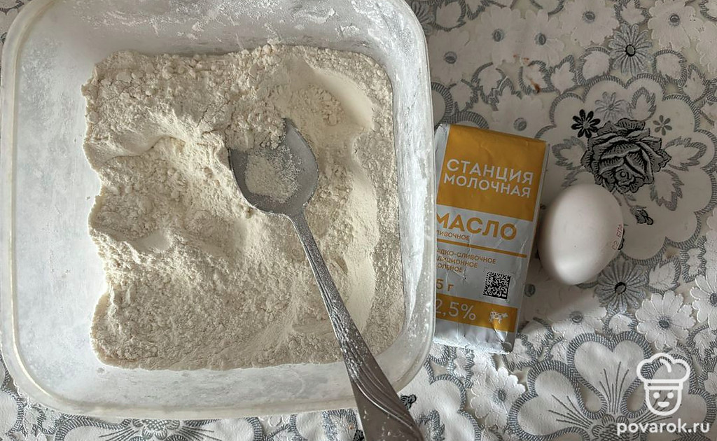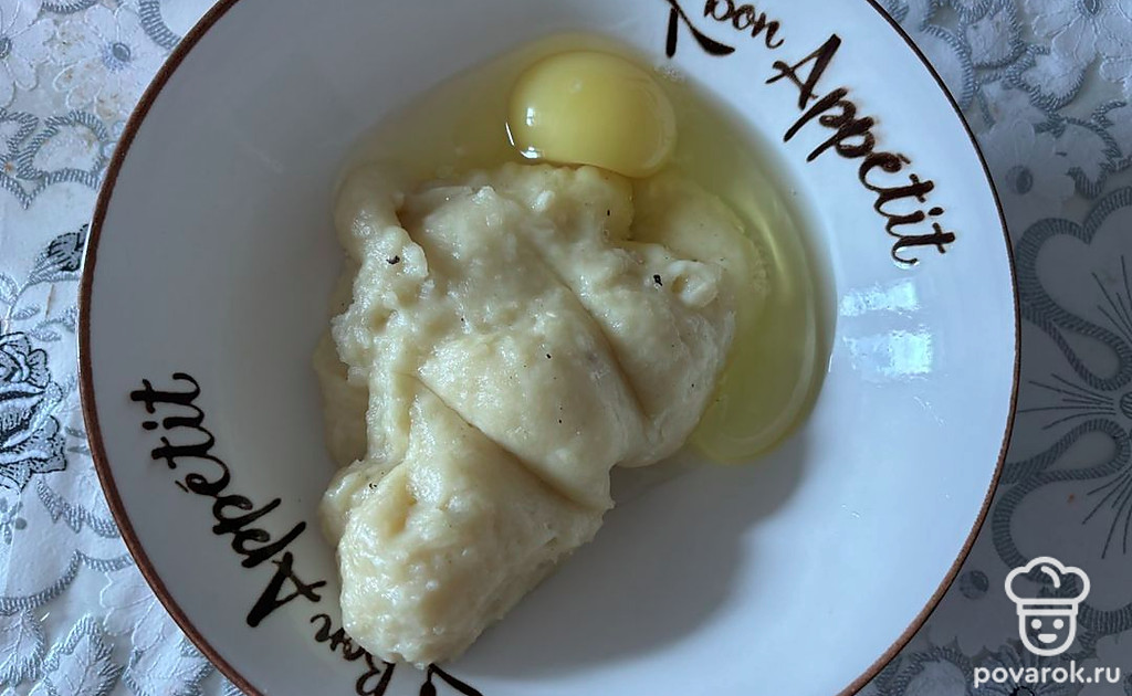 Заварную основу поместите в тарелку. Вбейте яйцо, тщательно перемешайте.