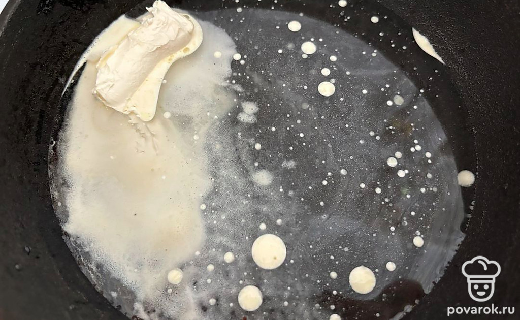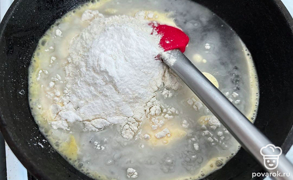 На медленном огне растопите сливочное масло с водой, солью и сахаром.