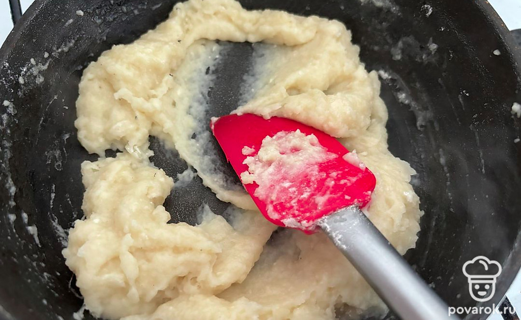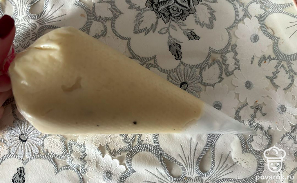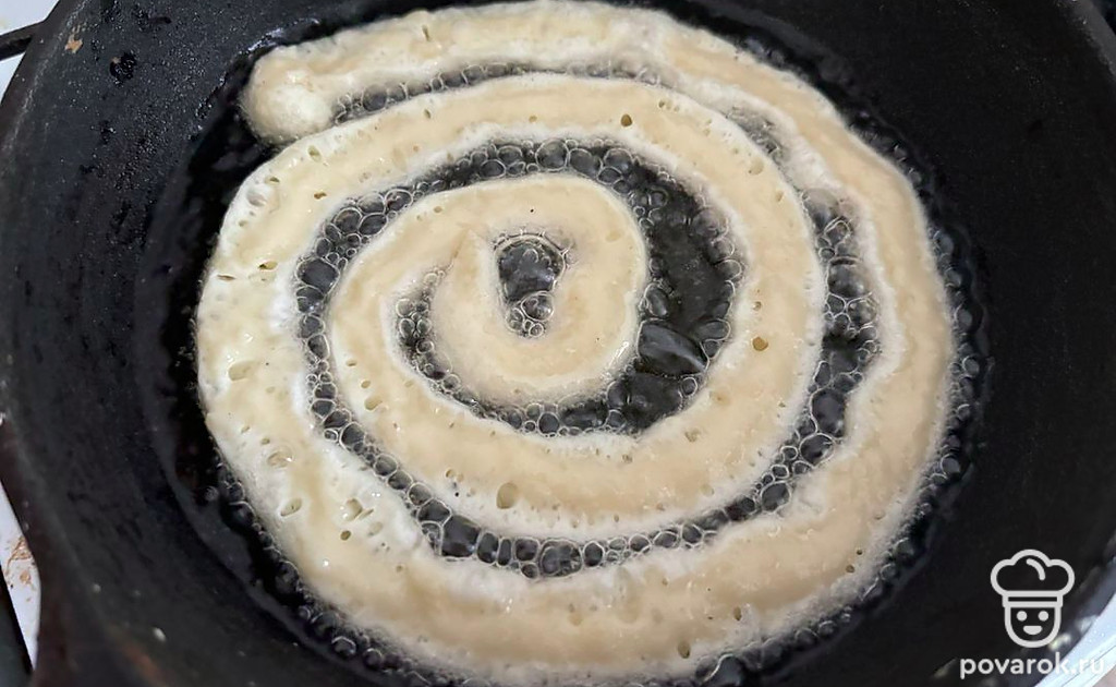 В сковородке разогрейте растительное масло. Из кондитерского мешка отсадите тесто так, чтобы получилась улитка.