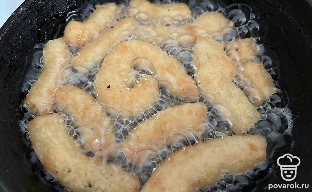 Во время жарки разрежьте улитку на небольшие кусочки при помощи ножниц. Обжаривайте печенье с обеих сторон (по 5 минут с каждой).