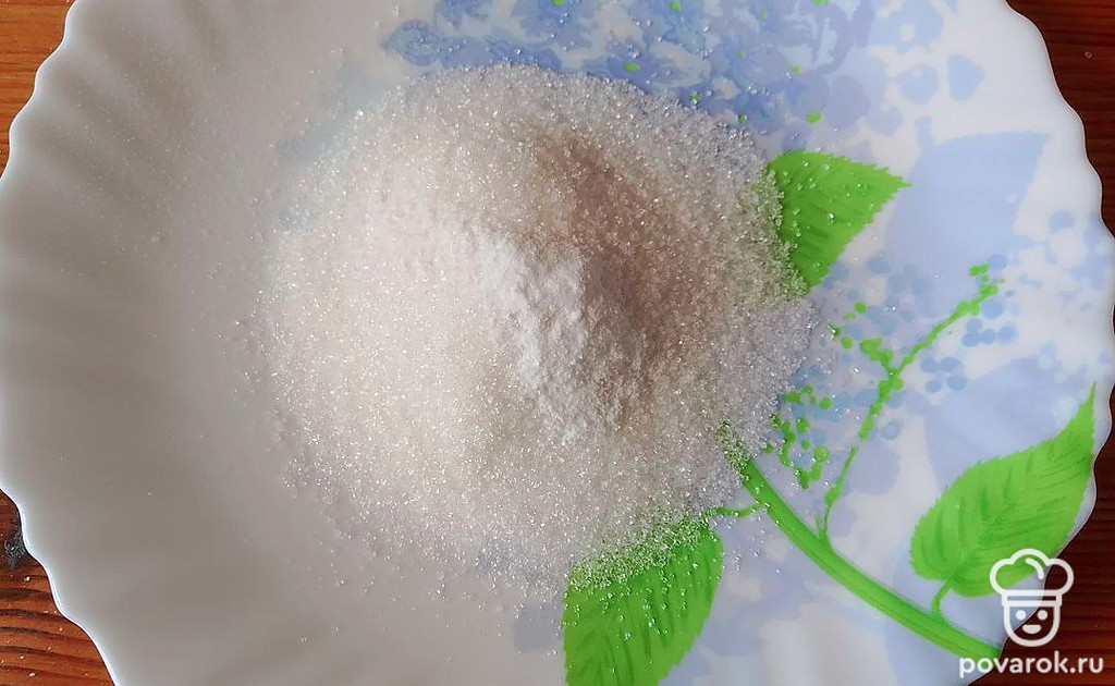 В тарелку насыпьте 2 столовых ложки сахара, добавьте ванилин.