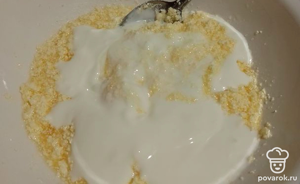 Добавить к массе из маргарина с песком сметану. Перемешать до однородного состояния.
