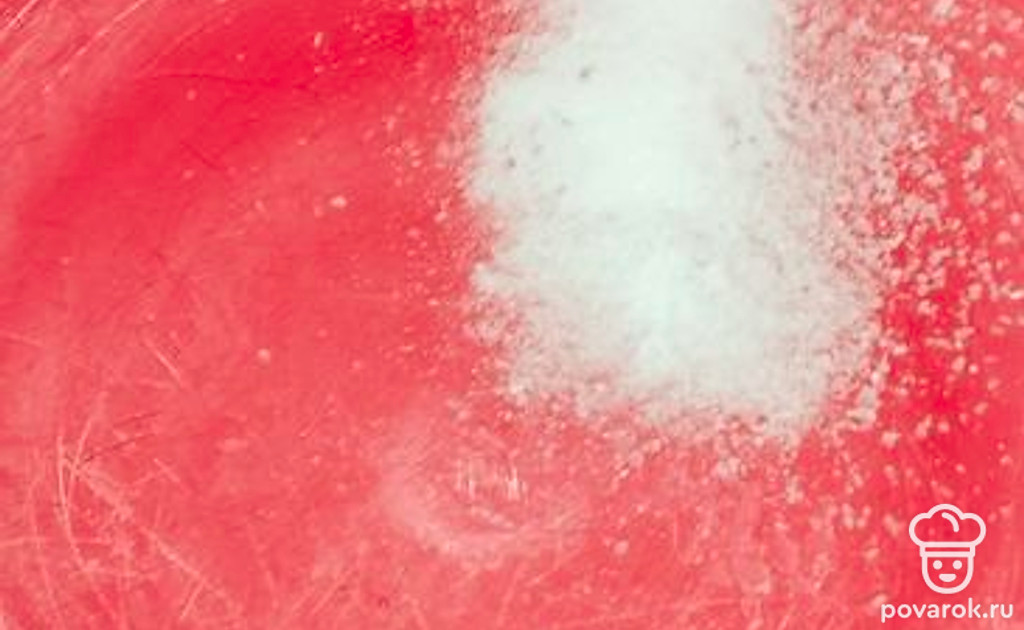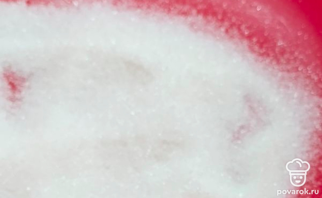 В обе емкости добавьте по 110 граммов сахара. Остальной сахар понадобится для посыпки.
