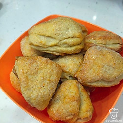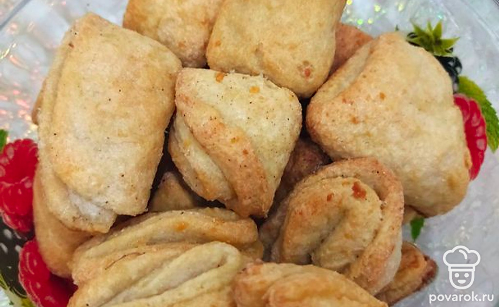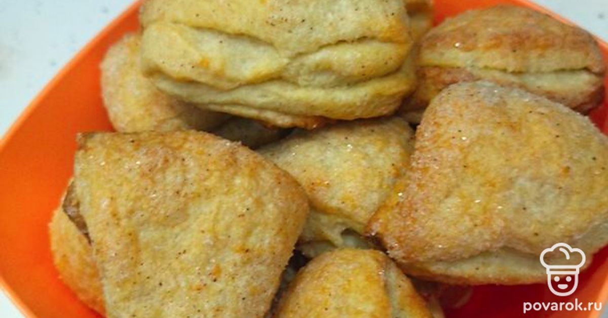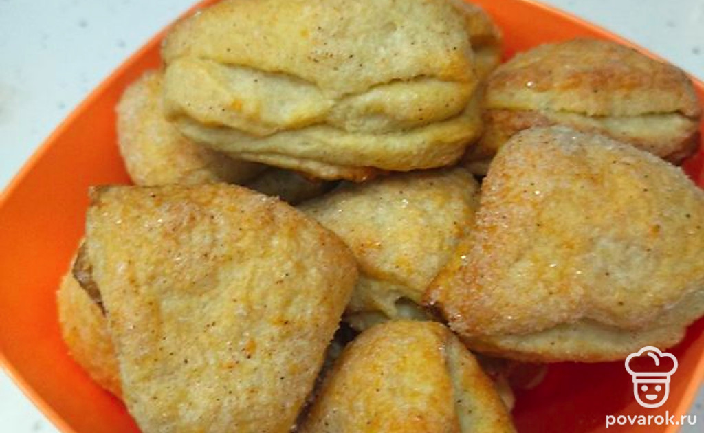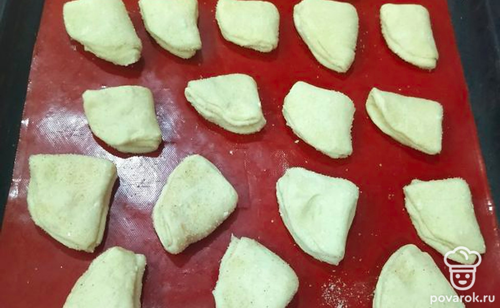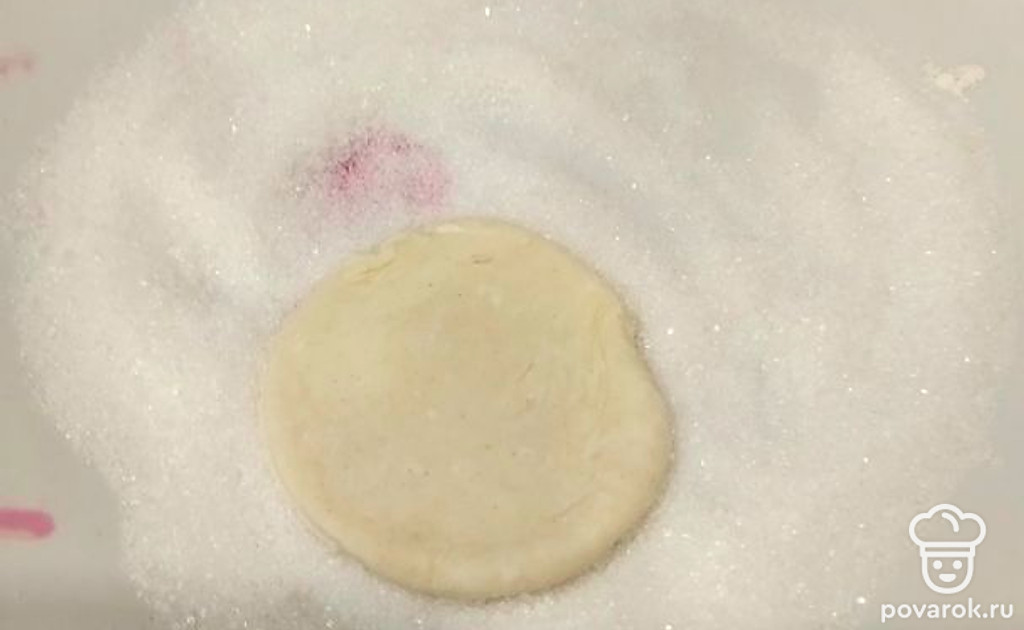 Каждый кружочек обмакните в сахар, два раза сложите пополам.