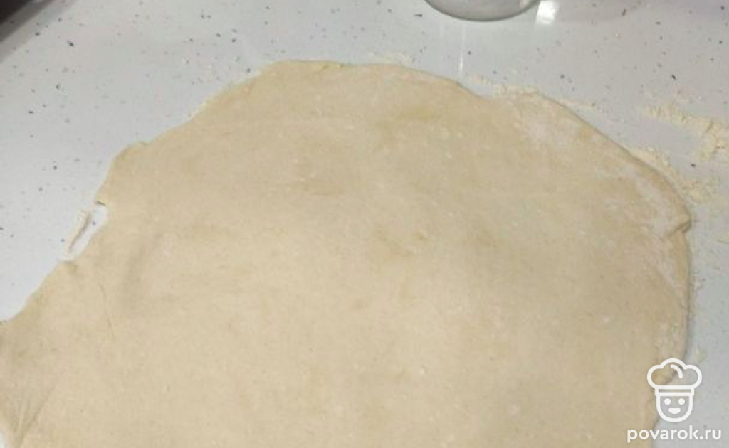 Достаньте тесто из холодильника и раскатайте в тонкий пласт.