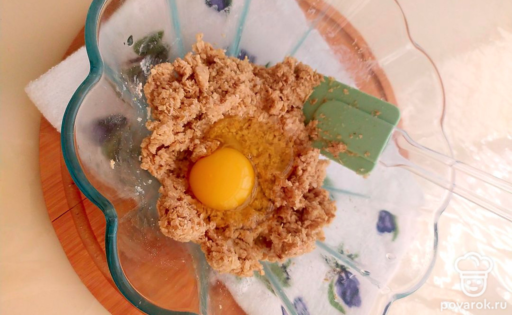 Вбейте одно куриное яйцо (не забудьте его помыть) и перемешайте.