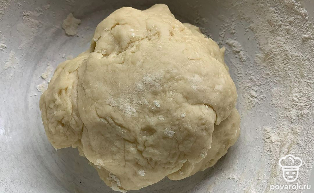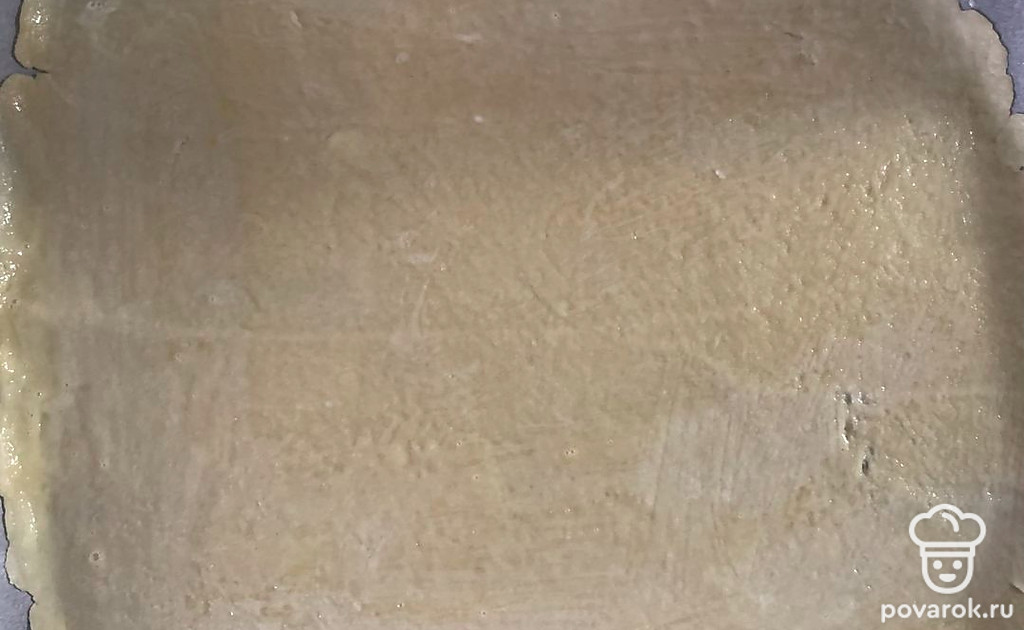 Тесто разделить на две части и раскатать на бумаге для выпечки.