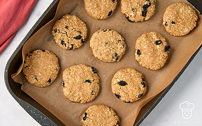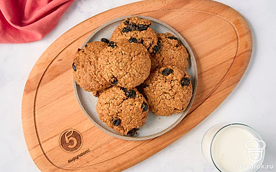 Печенье получается хрустящим и очень сытным. Перед приготовлением пробейте геркулес в блендере — так консистенция выпечки получится мягче. Хотя можно и ничего с ним не делать. Кроме изюма в тесто хорошо пойдут измельченные сухофрукты, орехи, мак, шоколадные капли или ягоды. В любом случае печенье получится вкусным и полезным. А если не добавлять в тесто сахар, то это печенье можно будет назвать диетическим.