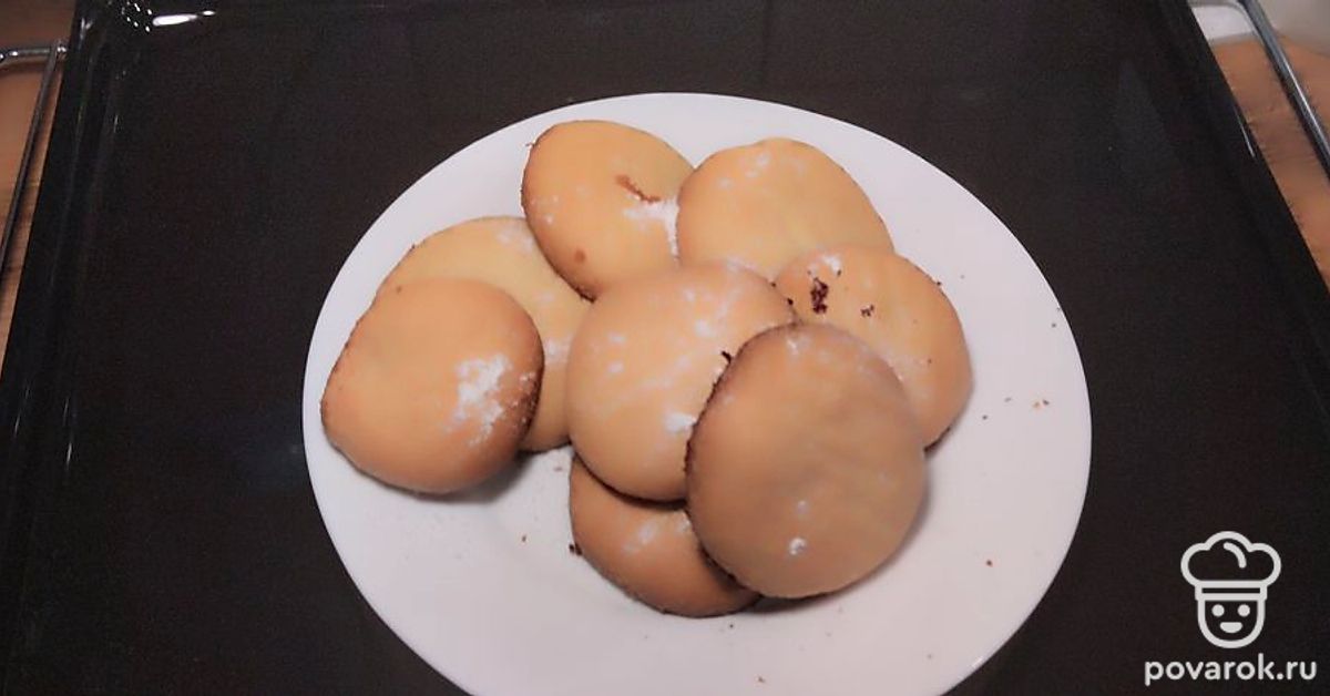 Потом смазать противень маслом и выложить туда печенье в форме кругов (можно сделать узоры вилкой).