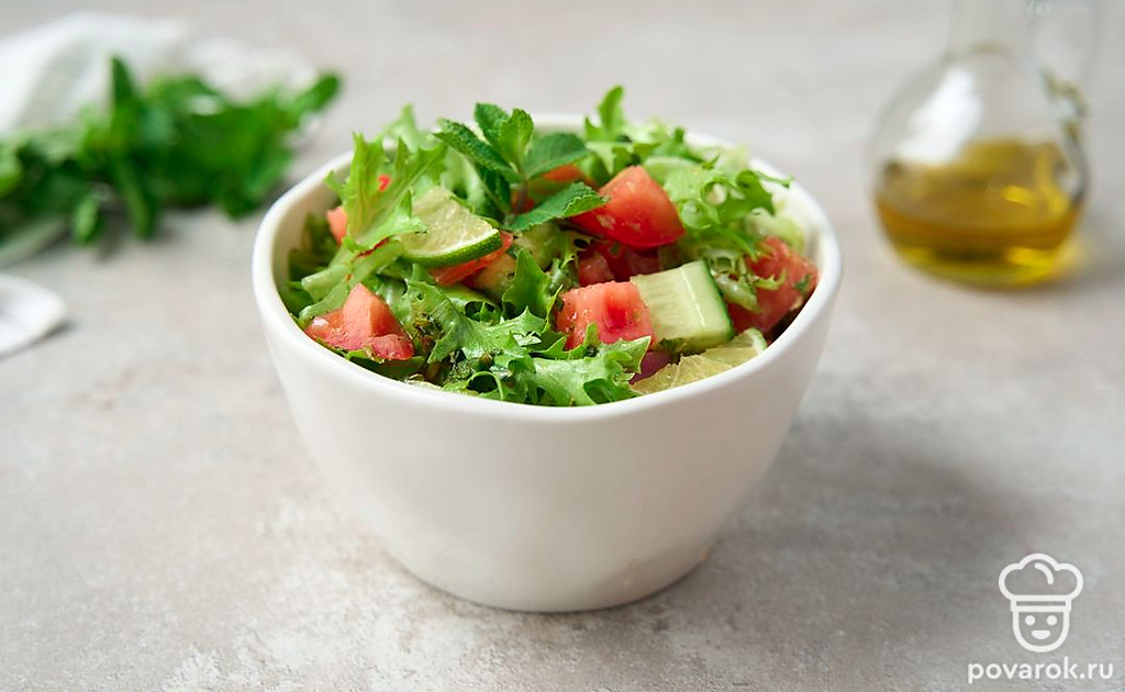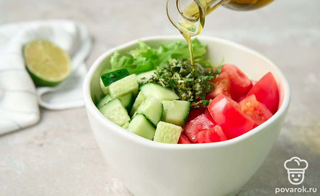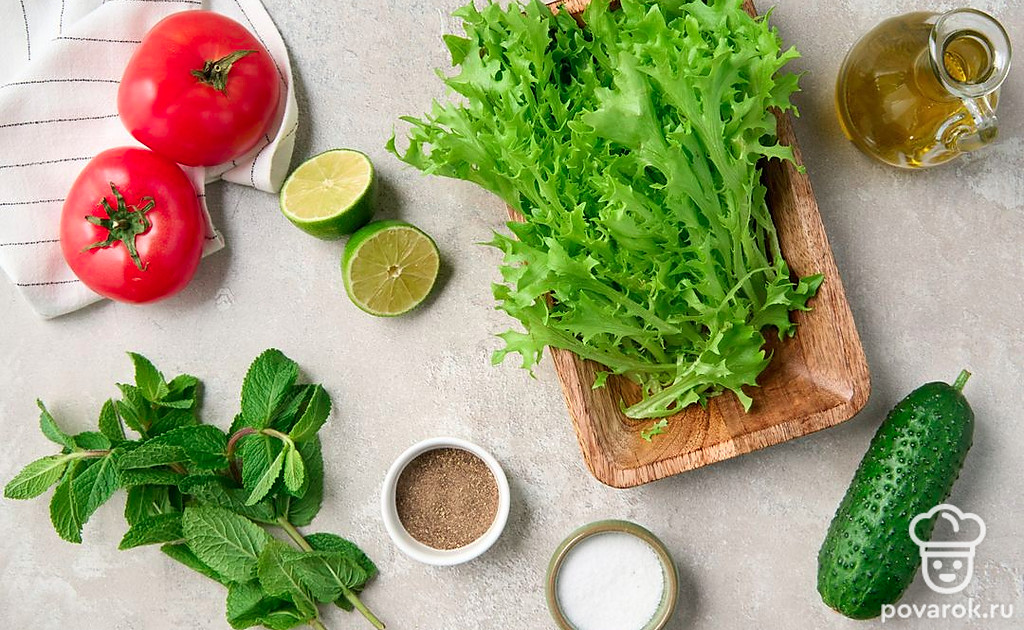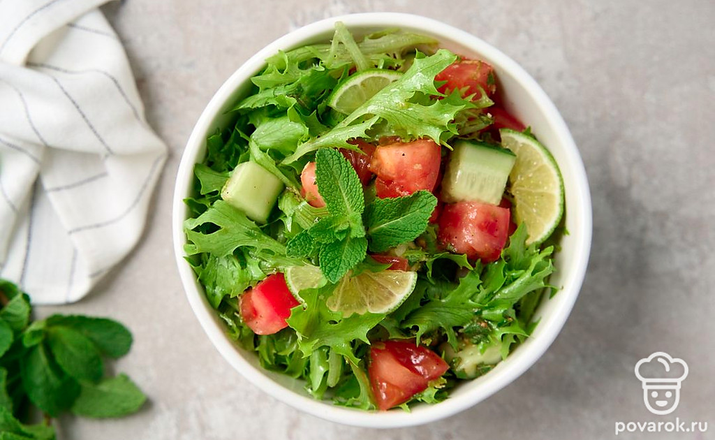 Ни один вид зелени не даст такого освежающего эффекта, как мята. Положите ее вместо петрушки или базилика в классический микс помидоров и огурцов и получите совершенно новый вкус привычного салата. Чтобы подчеркнуть вкус ментола и привнести в блюдо кислинку, добавьте сок и цедру лайма. Для заправки такого салата лучше всего подойдет оливковое масло первого холодного отжима.